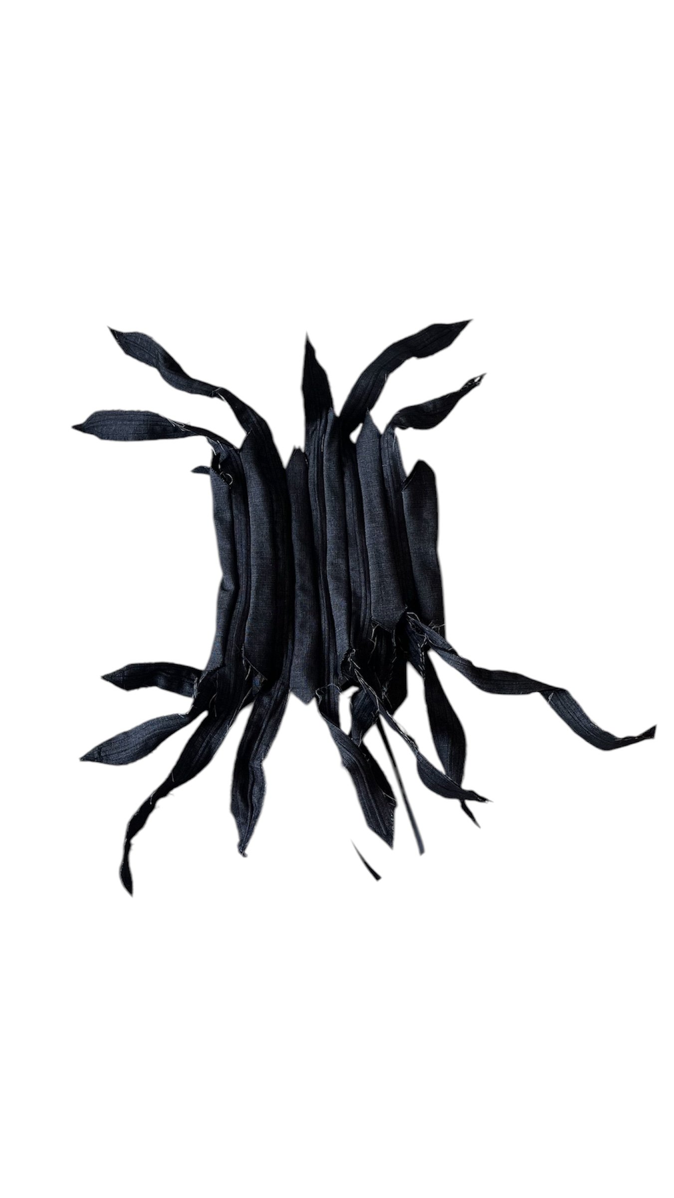 Corset made from recycled fabric from tailored trousers, internally with wires to give it shape, adjustable in the back